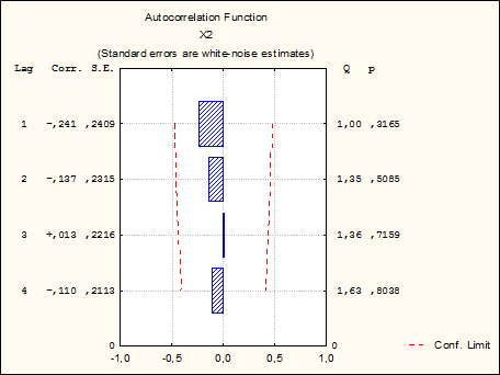 | X2 | -0,362160 | 0,195583 | -7,1242 | 3,8474 | -1,85170 | 0,091077 |