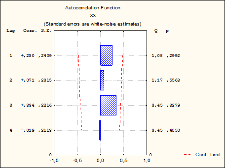 г) Гистограмма автокорреляции Х3