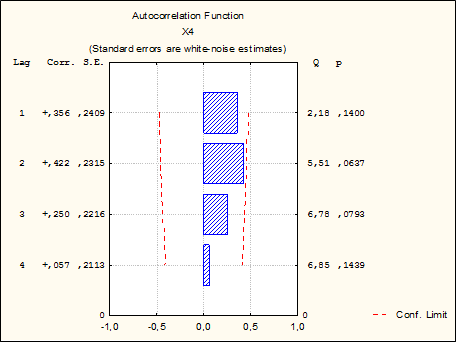 д) Гистограмма автокорреляции Х4