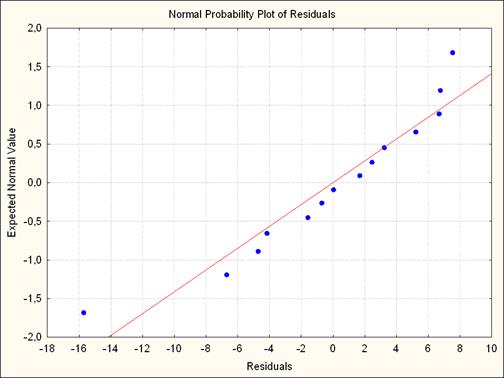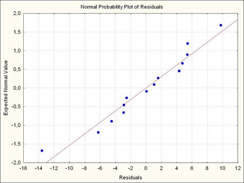 | Regression Summary for Dependent Variable: Y (Книга1) R= ,80564260 R?= ,64906000 Adjusted R?= ,54377801 F(3,10)=6,1650 p<,01211 Std.Error of estimate: 6,8332 |