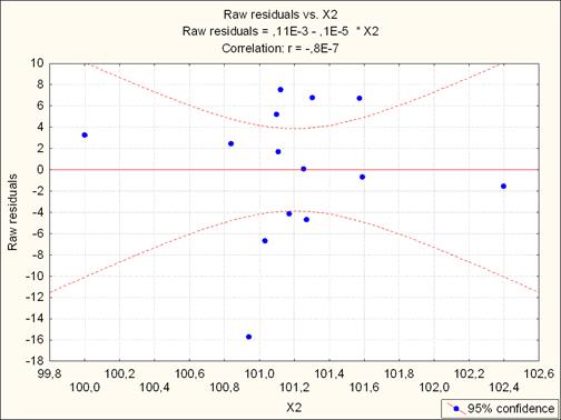 4. График остатков в зависимости от объясняющей переменной Х2.