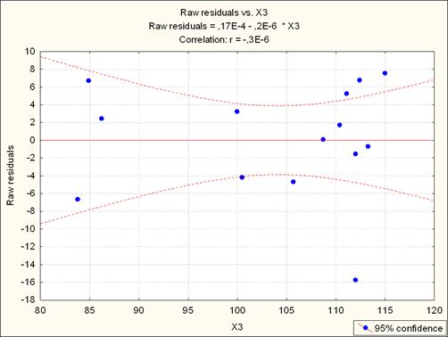 5. График остатков в зависимости от объясняющей переменной Х3.