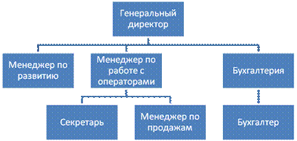 Структура данной организации является линейно-функциональной (рис.1). Данная структура наиболее распространена в настоящее время. Она удачно сочетают линейные подразделения, выполняющие весь объем производственной деятельности (реализация товаров и предоставлении услуг связи клиентам), с отделами, реализующими конкретные функции управления в масштабах всей организации (бухгалтерия, отдел развития).
