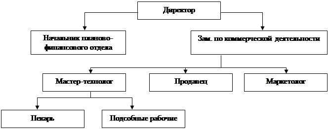 В данный момент на мини пекарне работает один человек, который подчиняется коммерческому директору. Но в связи с тем, что происходи расширение ассортимента продукции, планируется расширить штат пекарни. Для маленького предприятия чрезвычайно важно обеспечить многофункциональность персонала, так как наличие специализированных функций приведет к излишнему штату.