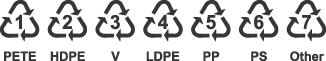 Знак перерабатываемого пластика. Этот знак ставится на всех видах полимерных упаковок. Пластиковая упаковка подразделяется на 7 видов пластмасс, для каждого из них существуют свой цифровой символ, который производители наносят с целью информирования о типе материала, возможностях его переработки и для упрощения процедуры сортировки перед отправкой пластмассы на переработку и вторичное использование: