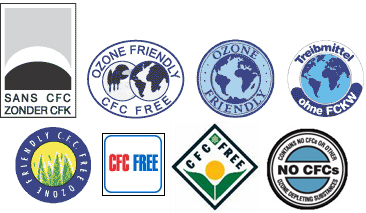 Отдельная группа знаков на бытовой технике, аэрозольных препаратах и других материалах – «Не содержит фреон», CFC Free: