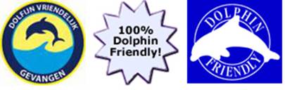 Морепродукты, рыба, консервы могут быть промаркированы знаком «Dolphin-friendly» – это декларация того, что в процессе вылова рыбы не использовались дрифтерные сети: