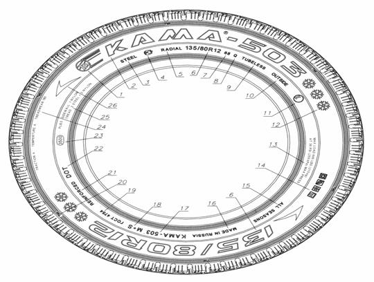 | 19 | ГОСТ или ТУ – обозначение нормативного документа, по которому изготавливается шина |