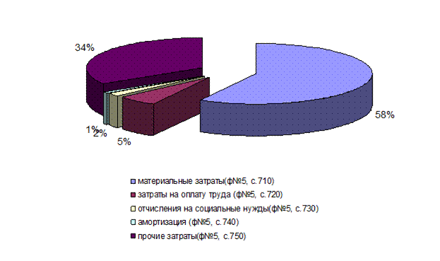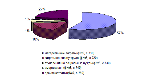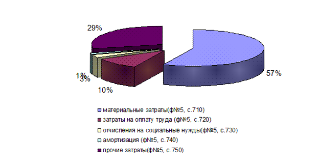 Рис.1.10. Структура себестоимости по элементам затрат в 2005 году
