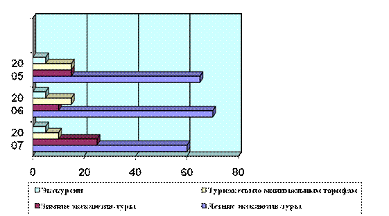 Данные, представленные в таблице, нельзя считать объективными, так как они были получены отделом по туризму непосредственно от туристических компаний (данные предоставили 70% компаний), а те, в свою очередь, очень редко дают точные данные по минимум двум причинам: