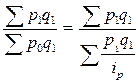 где q , p — объемы продукции и цены на нее в отчетном и базисном
