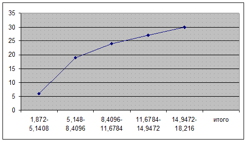 Вывод. С вероятностью 0,683 можно утверждать, что в генеральной совокупности организаций доля организаций с ожидаемой прибылью 14,948 млн руб. и выше будет находиться в пределах от 5,1% до 14,9%.