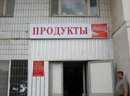 1) Вывеска над входом в магазин . Очень удобный способ, потому что при таком расположении вывеска и оформление входа работают над привлечением покупателей с улицы одновременно. В то же время люди достаточно привыкли к размещению названия над входом и поэтому необоснованное отсутствие вывески в этом месте может вызвать у человека сомнение, не ошибся ли он дверью.