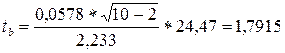 Достоверность всего уравнения связи определяем по критерию Фишера.