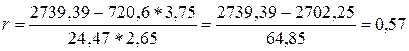 Найдем коэффициент корреляции, определяющий тесноту связи.