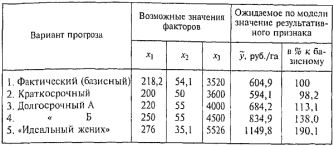 другого, рост от третьего, характер от четвертого; вот если бы соединить все нравящиеся ей качества в одном человеке, она бы не колеблясь вышла замуж. Так и при прогнозировании мы объединяем лучшие (с точки зрения модели дохода) наблюдаемые значения факторов: берем значение Х[ от хозяйства № 10, значение х2 от хозяйства № 2, значение х3 от хозяйства № 16. Все эти значения факторов уже существуют реально в изучаемой совокупности, они не «ожидаемые», не «взятые с потолка». Это хорошо. Однако могут ли эти значения