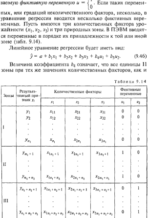 Если, кроме количественных факторов, при многофакторном регрессионном анализе в уравнение включается и неколичественный, то применяют следующую методику: наличие неколичественного фактора у единиц совокупности обозначают единицей, его отсутствие — нулем, т.е. вводят так назы-