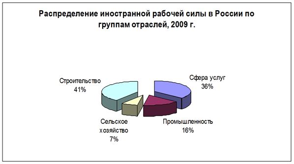 Рисунок 2. Распределение российской иностранной рабочей силы по группам отраслей 2009 г.