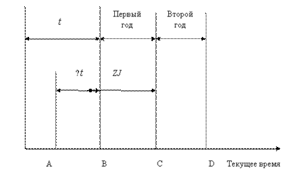 ∆ t— время от момента взятия кредита предпринимателем до момента завершения начального производственного цикла, годы (по экономическому смыслу время ∆ tполностью вписывается в период t;