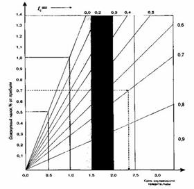 На графике представлен ключевой пример (в виде штриховых линий), построенный для уяснения метода использования применения на практике этой номограммы с целью определения срока окупаемости кредита.