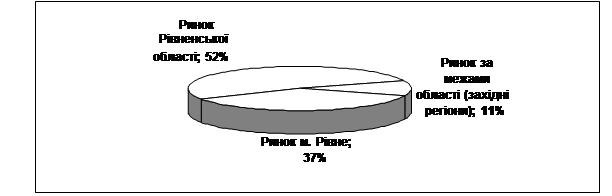 Для реалізації своєї мети, дане підприємство постачає свою продукцію на: ринок м. Рівного, ринок Рівненської області та ринок за межами області (західний регіон).