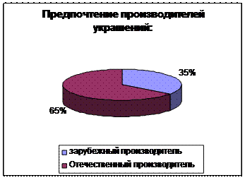 - исходя из материального положения покупателя, выбираются различные производители украшений, как отечественного, так и зарубежного. Лица со средним достатком предпочитают отечественного, а у тех чьё материальное положение выше среднего могут позволить себе приобрести продукцию и зарубежного производителя;