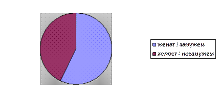 Распределение респондентов по критерию семейного положения показало наибольшее преобладание в выборке женатых (замужних), которых больше на 14 %. Из которых 58% женатых / замужних респондентов (в сумме), 42% - холостых / незамужних.