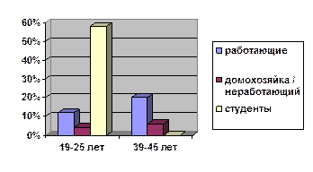 Деление по сферам занятости отразило высокий процент студентов, можно объяснить высокой долей в выборке возрастной категории 19-25 лет (58%), а также долей неработающих и домохозяек – 10%. Работающих респондентов – 32%.