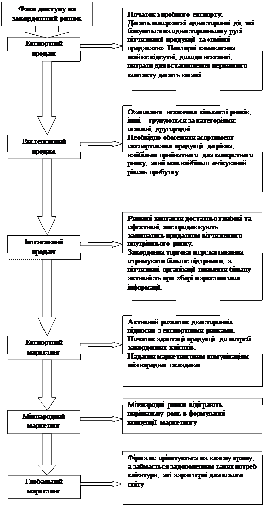 | Етапи інтернаціоналізації (розвитку маркетингу) підприємства |