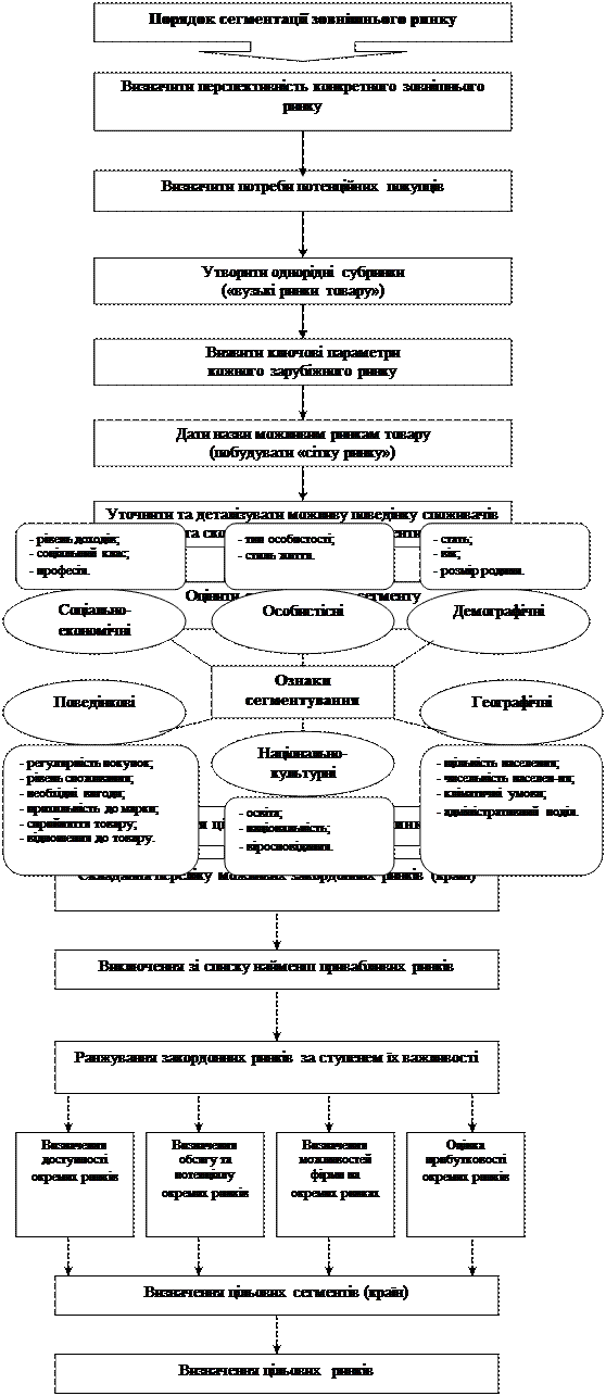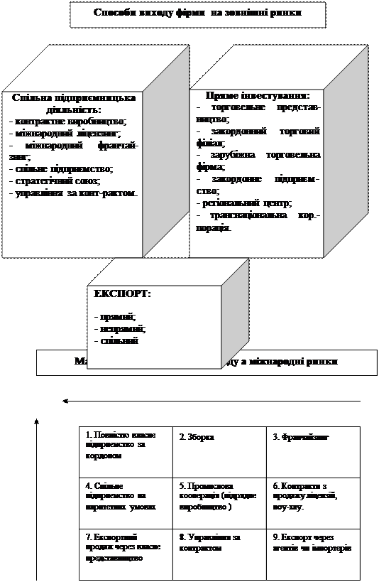 - аналіз доцільності виходу підприємства на зовнішні ринки;