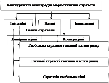 - конкурентна – формування конкурентних переваг бізнесу в міжнародному середовищі;