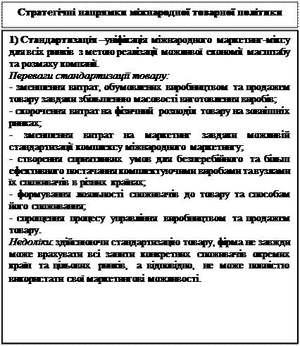 - визначення основних складових та особливостей побудови міжнародної маркетингової політики підприємства;