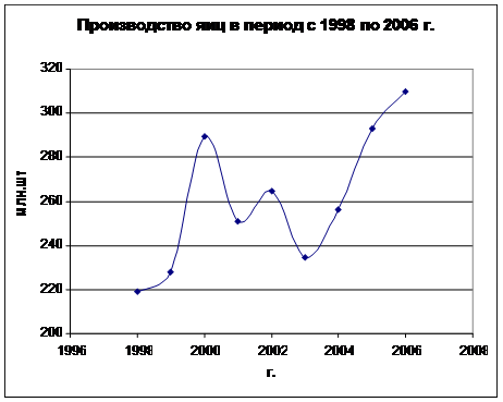 Целью данной работы является проведение статистически - экономического анализа динамики производства яиц в хозяйствах всех категорий Ивановской области. Можно выделить следующие задачи данной работы: