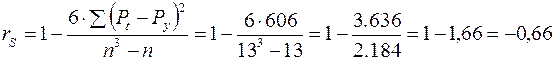 Вывод: коэффициент ранговой корреляции Спирмена характеризует устойчивую тенденцию к росту яйценоскости кур - несушек в хозяйствах всех категорий Ивановской области.