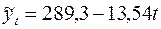 Рис 4.3.1 Динамика яйценоскости кур - несушек в хозяйствах всех категорий Ивановской области в период с 1991 по 2003 гг. с линейным трендом.