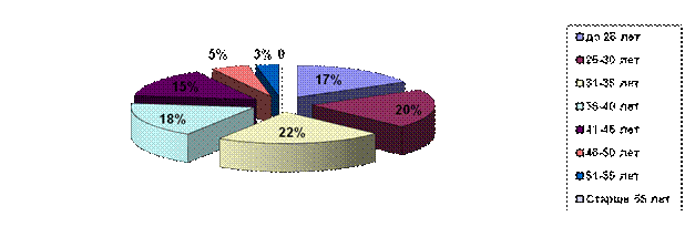 Рис. 3.2 отражает возрастную структуру лиц, принявших участие в опросе. Более половины (60%) респондентов находятся в возрасте от 25 до 40 лет. Средний возраст опрошенных - 34 года.