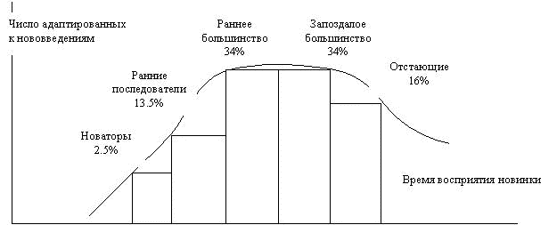 Как воспринимается новинка различными категориями потребителей рассмотрим на схеме (рис.5.5.)