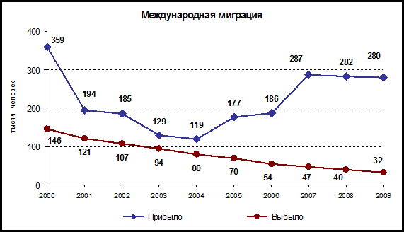 Внешняя миграция в 2009 г. составляла всего 15% от общего миграционного оборота, однако именно она оказывает влияние на изменение численности населения России в целом.