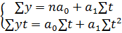 yср t =a0 +a1 *t, где