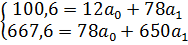 a0 и a1 – неизвестные параметры (a0 – экономического смысла не имеет; a1 – среднемесячный прирост (+) или снижение (-))