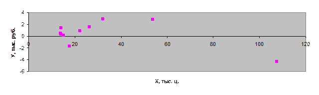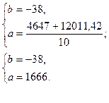 Параметр «b» является коэффициентом регрессии и характеризует, что при уменьшении факторного признака на 1 единицу результативный признак уменьшается на величину параметра прямой b(приуменьшении количества реализованного зерна на 1 единицу прибыль уменьшится на 38 единиц).
