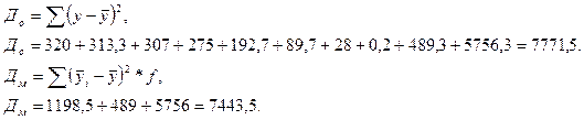 Таблица 19 – Расчетные величины для проведения дисперсионного анализа.