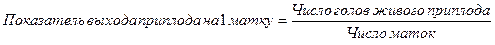 Два последних показателя важны для многоплодных видов животных, способных дать больше одного приплода за год (свиньи, овцы, кролики). Выход приплода на 1 или 100 маток является важным косвенным показателем организации всего производства. Если на 100 коров получают лишь 70-75 телят, это свидетельствует о серьезных недостатках в организации осеменения, кормления, содержания, лечения коров. При расчете этого показателя важно обратить внимание на сопоставимость данных о численности голов приплода и числа маток. Для коров на начало года необходимо брать приплод, полученный от этих коров, а не весь приплод, включая и от молодых коров, переведенных в основное стадо. При вводе в стадо 30% молодых коров общий выход телят на 100 коров на начало года может составить 100 единиц при получении от самих коров всего 70 телят. Это же относится к учету приплода поросят от основных и проверяемых свиноматок, от взрослых овцематок[8,356]. Для характеристики использования маток рассчитывается также