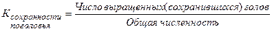 Процесс выращивания молодняка характеризуется по отдельным возрастным группам и полученному приплоду в целом коэффициентами: