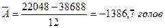 При наличии данных о средней численности за каждый месяц средняя за год или другой период определяется обычно как средняя арифметическая простая. Если известна средняя численность, допустим, за пастбищный период и за стойловый, то средняя годовая численность определяется как средняя взвешенная[4,117].![]()