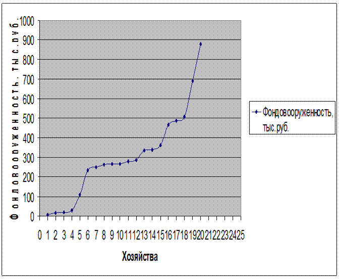 Ранжированный ряд распределения хозяйств Верховского и Ливенского районов Орловской области по фондовооруженности в 2007 году.