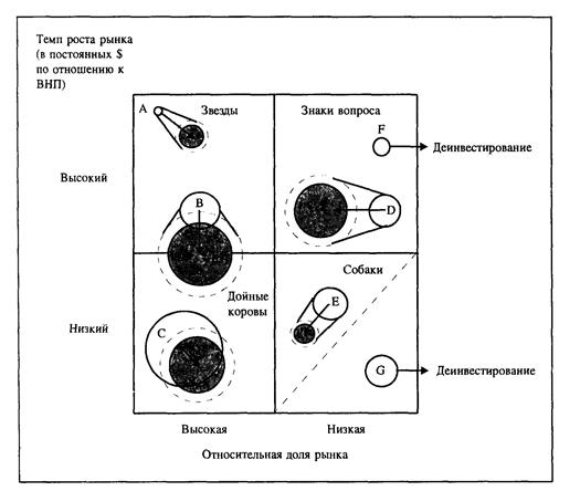 Совокупность ответов на вопросники 6 и 7 позволяет перейти к анализу портфеля по методу матрицы БКГ или «Дженерал Электрик».
