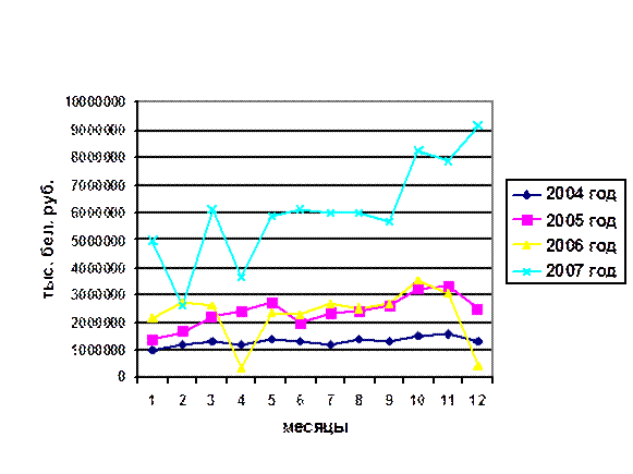 Рисунок 2.2 Поступление денежных средств на счета ОАО "Борисовский завод "Металлист" за 2004-2007 гг.