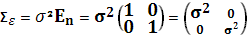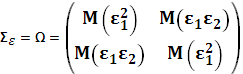 Коренное отличие обобщенной модели от классической состоит только в виде ковариационной квадратной матрицы вектора возмущений: вместо матрицы Σε = σ2 En для классической модели имеем матрицу Σε = Ω для обобщенной. Последняя имеет произвольные значения ковариаций и дисперсий. Например, ковариационные матрицы классической и обобщенной моделей для двух наблюдений (п=2) в общем случае будут иметь вид: