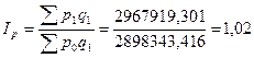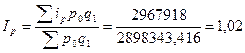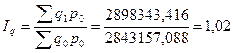 Индекс стоимости можно получить и перемножив индекс цен на индекс физического объема продукции: Ipq = Ip * Iq =1,02 *1,02 =1,04.